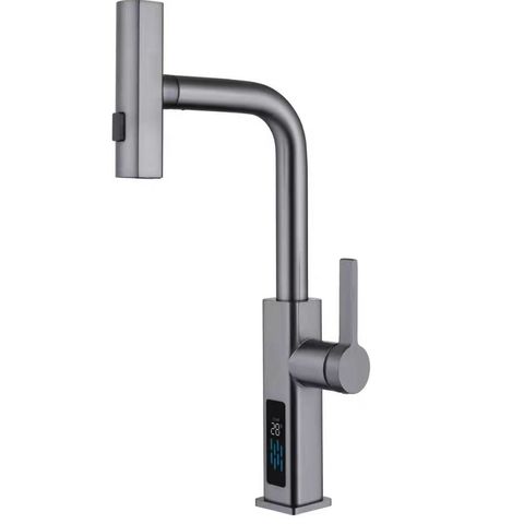 HLK özelleştirilebilir paslanmaz çelik dijital ekran mutfak musluk renkli lavabo musluklar ile Modern tasarım tarzı çekin